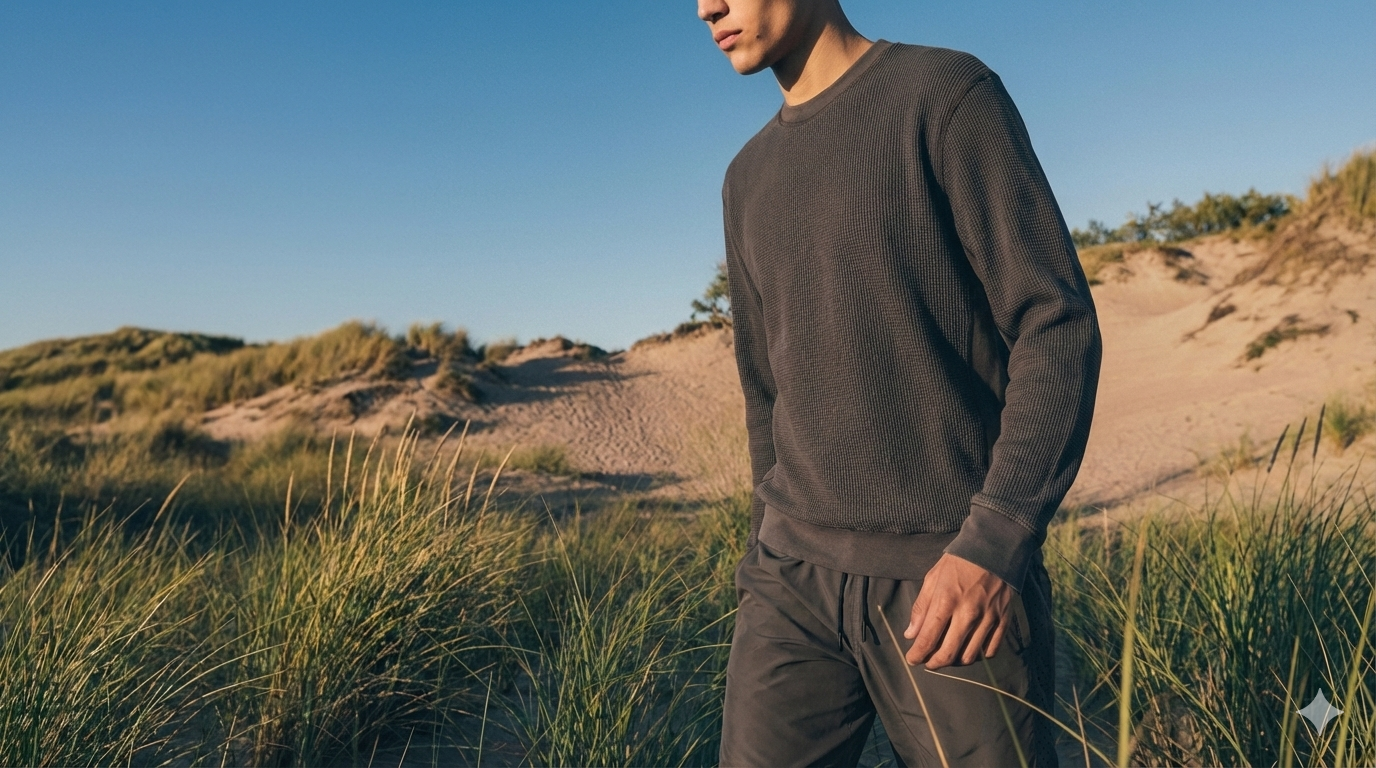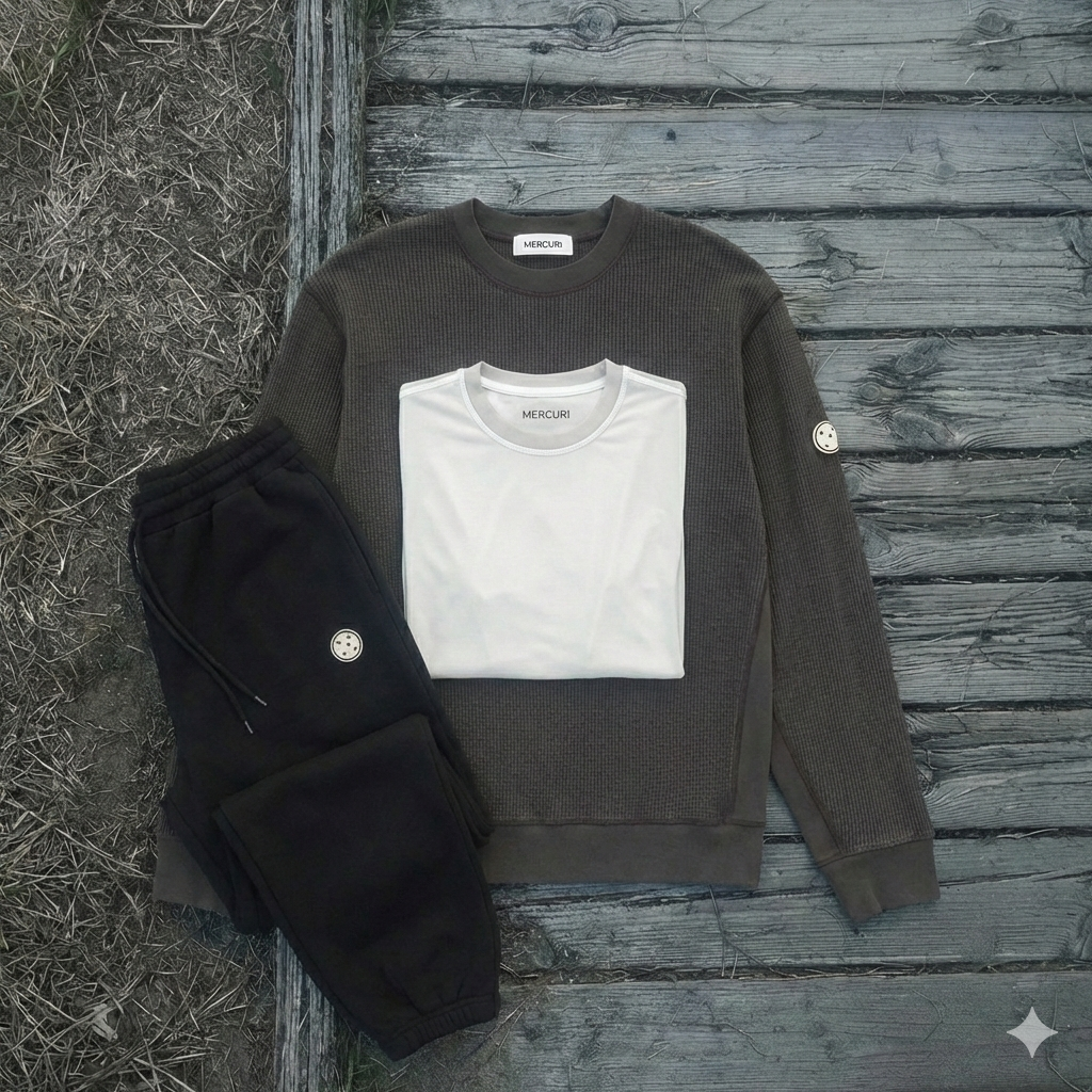 - One system, three anchors: tee, fleece, pant—built to layer and live in.
